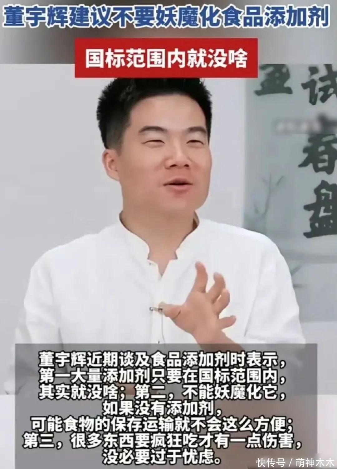 据悉,就在科普居里夫人的直播的前几天,董宇辉就因直播间言论惹过争议。他当时在直播间大聊食品添加剂的问题,还煞有其事地建议大家不要妖魔化食品添加剂,称很多东西要疯狂吃才有一点伤害,没必要过于忧虑,话里话外都在为食品添加剂鸣不平。
