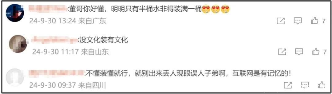 随着争议声音越来越大,董宇辉的评论区很快沦陷。大家觉得他明明只有半桶水的知识储备,非得装成有一桶水的样子,这样没文化装有文化的行径就是不懂装懂,偏偏还出来卖弄学识,误人子弟。何况,他所犯的都是常识性错误,这更是让网友痛批他为“文盲”。