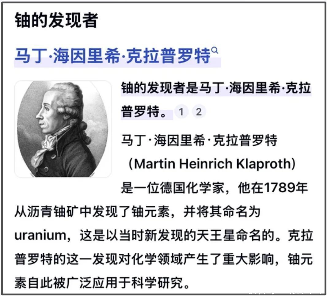 在介绍居里夫人的时候,董宇辉首先提到了“她发现了高浓缩的铀”,这也是他犯的第一个常识性错误。居里夫人发现的是钋和镭,铀是德国化学家马丁·海因里希·克拉普罗特发现的。