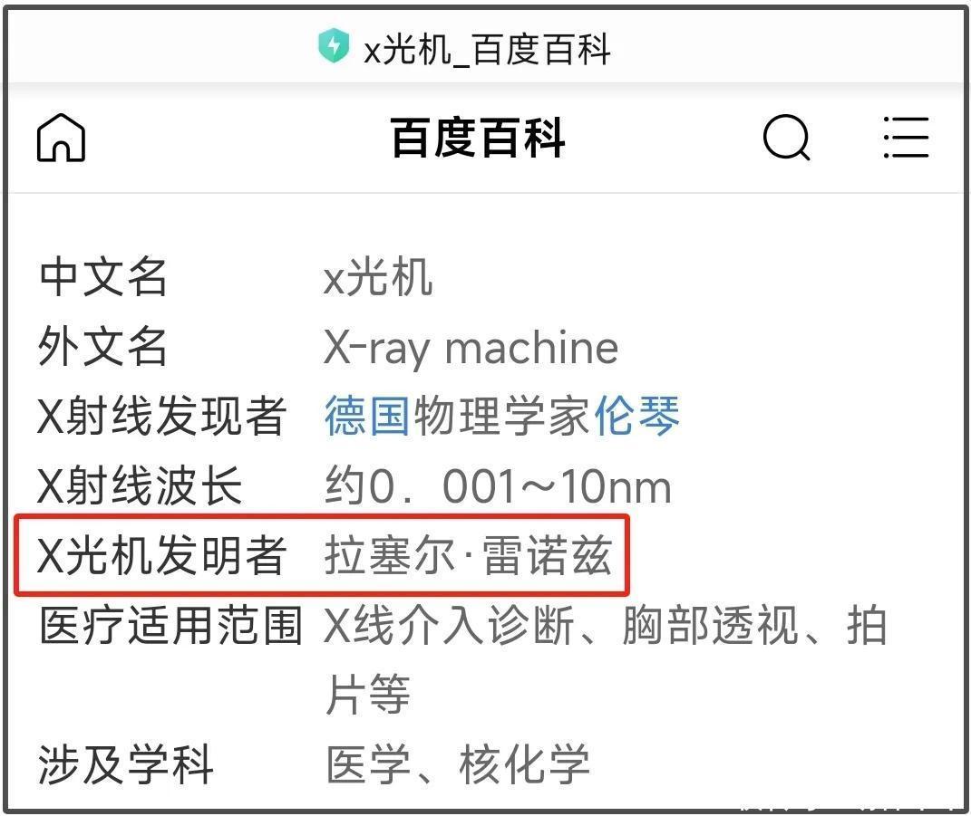 最后,董宇辉又侃侃而谈,称居里夫人发明了另外一个对军队有巨大贡献的东西,那就是X光机。多说多错,X光机的发明者并不是居里夫人,而是拉塞尔·雷诺兹。